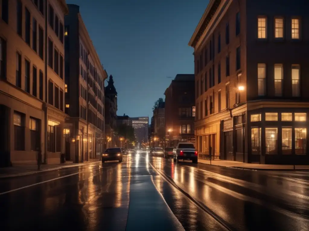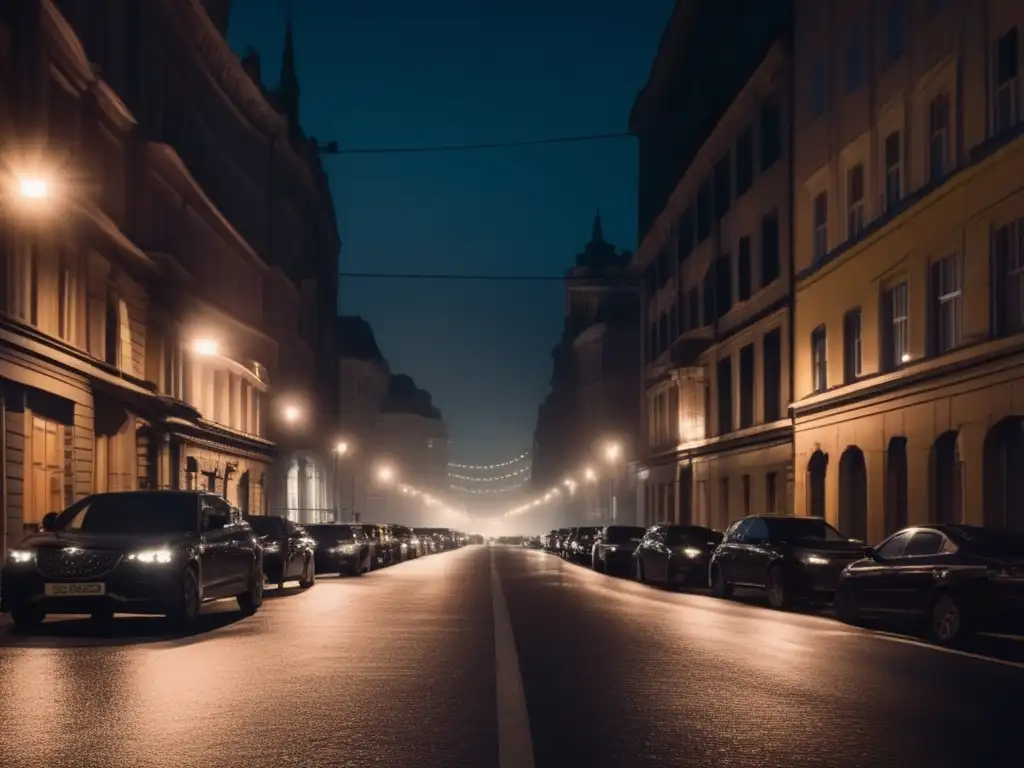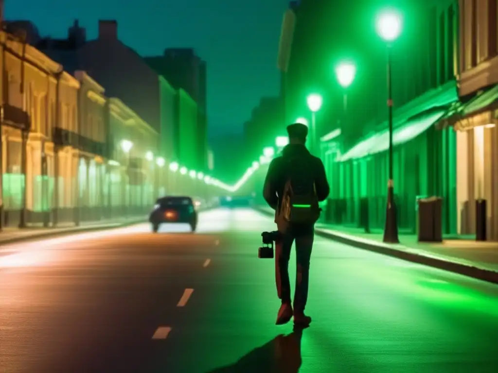 Cámaras de visión nocturna urbana."" title="Calles nocturnas: misterio urbano iluminado">